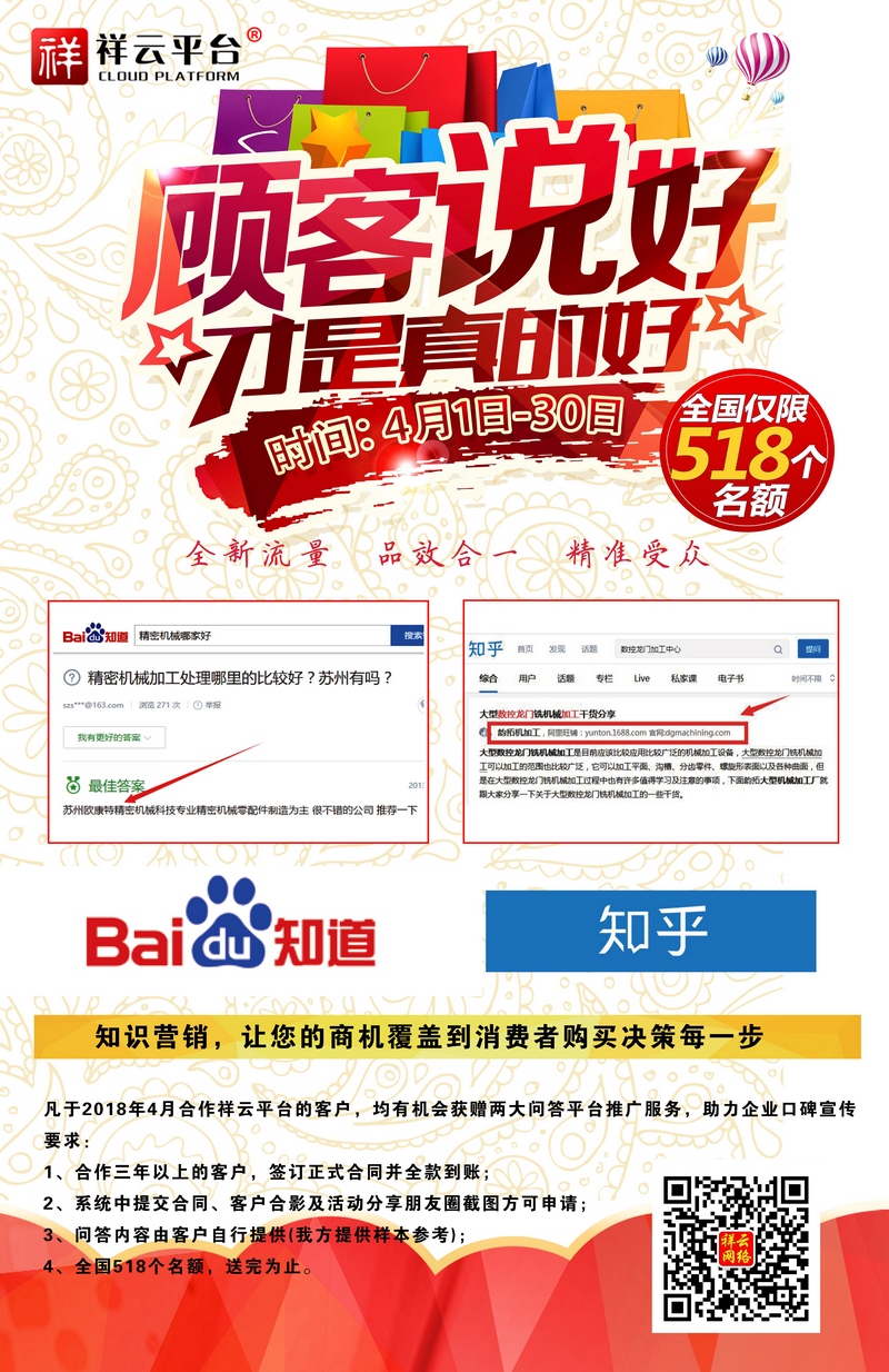 百度知道,知乎。全新流量,品效合一,精準受眾,F(xiàn)在做祥云營銷型網(wǎng)站,就送百度知道、知乎口碑營銷! 截止日期:2018-4-28日